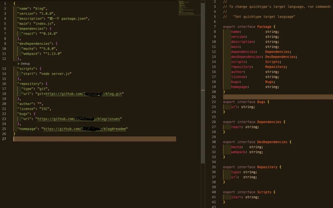 {"a":1,"b":"2","c":3} // 复制这段 JSON 代码// Generated by https://quicktype.ioexport interface Obj {a: number;b: string;c: number;}