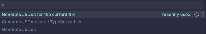 选择 Generate JSDoc 为当前光标处代码生成文档注释;