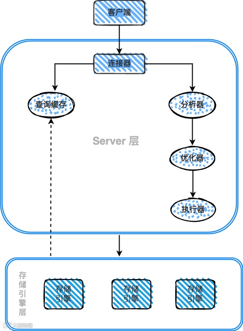 一张简单的图说明下,MySQL架构有哪些组件和组建间关系,接下来给大家用SQL语句分析