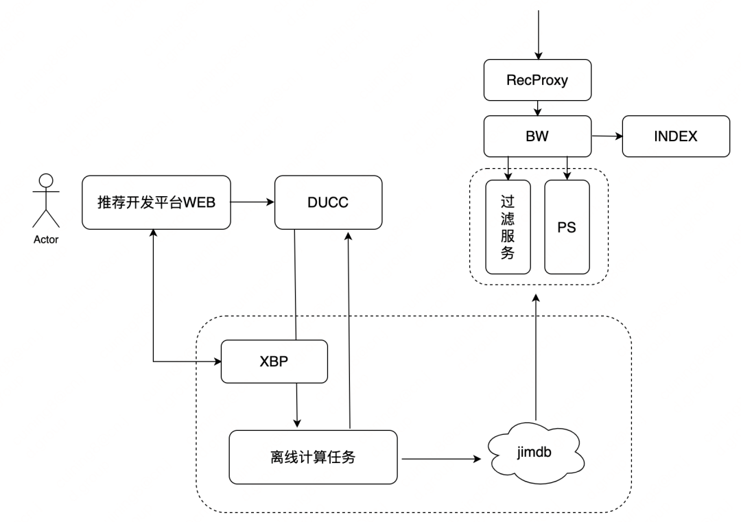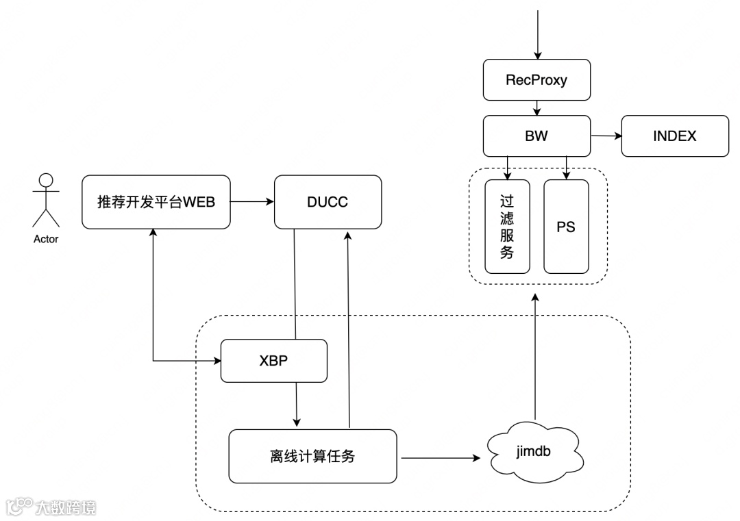 依据个性化推荐能力划分,大致可以分为数据接入、召回、排序、过滤/调权、多样性、渲染等推荐算法模块以及AB实验、数据分析能力; -