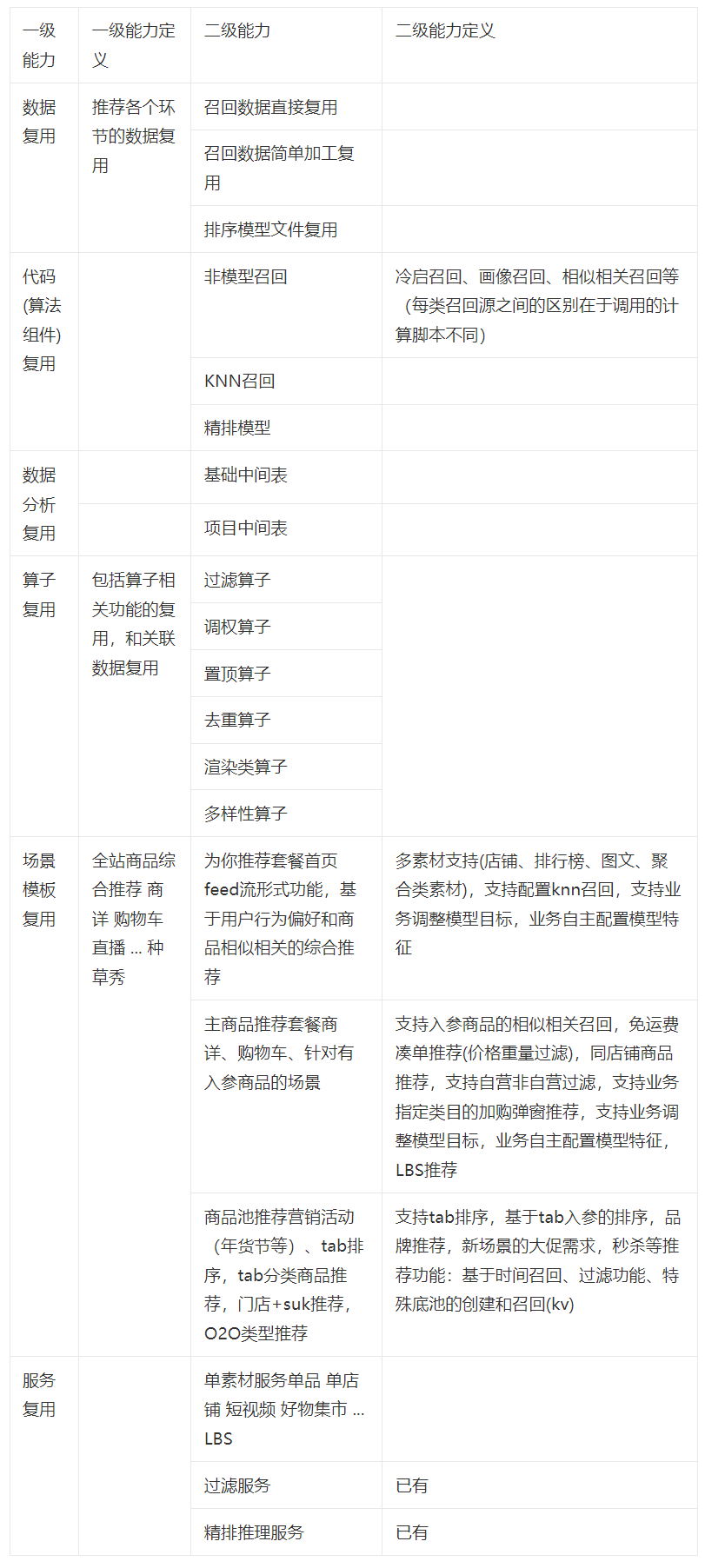2.1 推荐算法PaaS化能力分类