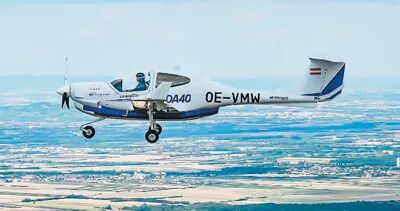万丰钻石电动飞机eDA40充电20分钟可以续航90分钟,与传统活塞式飞机相比,运营成本可降低40%以上。图为eDA40成功试飞。万丰集团供图