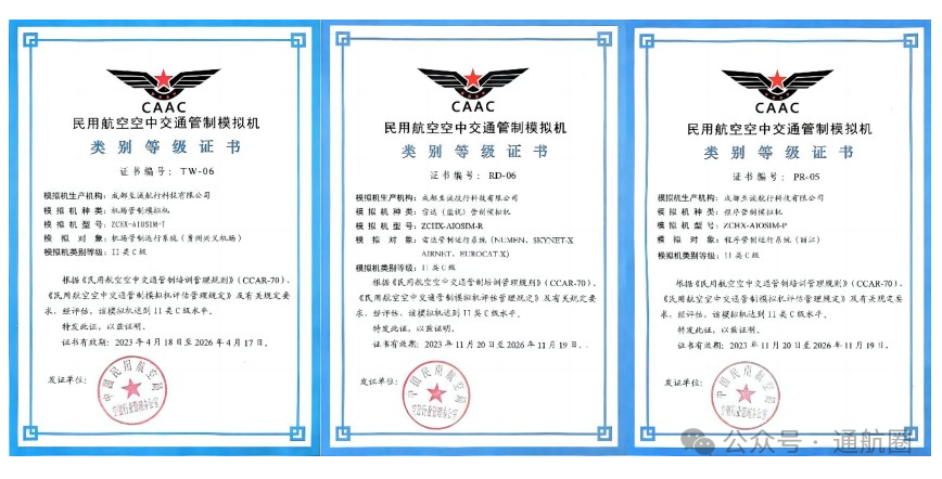 据报道,云南君侨航空科技有限公司是至诚集团旗下一家立足于航空业,专注于航空服务与航空培训领域的企业,具备民航局认可的飞行程序设计资质,可提供飞行程序设计、航行评估、空域规划、通航业务服务。至诚集团于2023年11月取得中国民航局空管行业管理办公室颁发的全种类民用航空空中交通管制模拟机“Ⅱ类C级”类别等级证书,包括机场管制模拟机(ZCHX-AIOSIM-T)、程序管制模拟机(ZCHX-AIOSIM-P)和雷达(监视)管制模拟机(ZCHX-AIOSIM-R),集齐了空管模拟机资质证书“全家福”,且三证均达到空管模拟机最高类别等级。