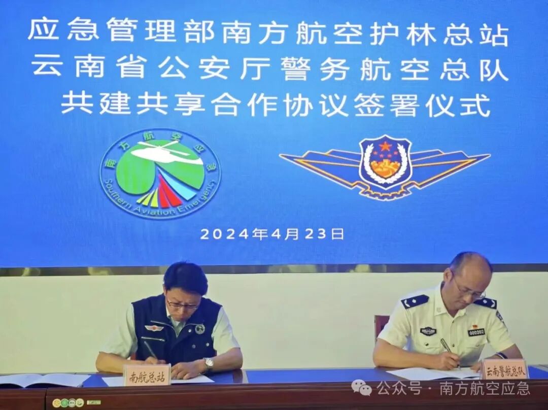 为主动适应新形势下“全灾种、大应急”任务需要,建立应急航空与警务航空快速联动机制,进一步提升云南省森林火灾等自然灾害、突发特情处置能力。4月23日,应急管理部南方航空护林总站与云南省公安厅警务航空总队签署共建共享合作协议。南航总站周万书副总站长、云南省警航总队总队长李欣伟出席签约仪式。