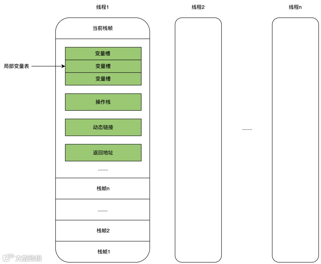 局部变量表由变量槽组成,《Java虚拟机规范》指出:“每个变量槽都应该能存放一个boolean、byte、char、short、int、float、reference或returnAddress类型的数据”。