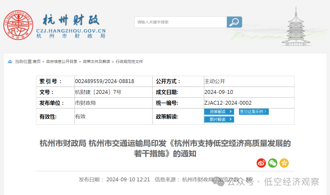 图文来自于低空经济观察、杭州市财政局网站,如需转载,请注明出处。