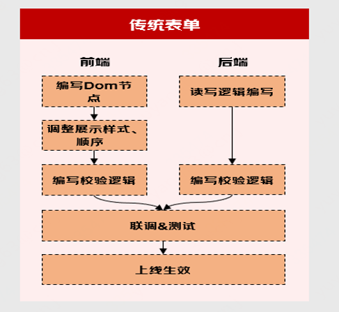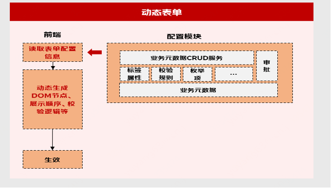 使用范围,并不是所有业务表单都适合动态化 , 表单动态化的改造收益与维护损耗存在一个潜在的收益峰值点。过于复杂的业务表单系统反而会因为动态化而变得难以维护。 动态表单会将常规业务CRUD逻辑复杂化;