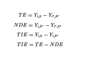 以上公式可得,求出TE和NDE时,可推导计算中间接因果效应 TIE。