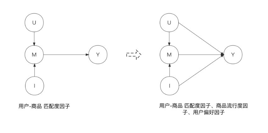 3). U → Y, 用户天然心智,user对流行商品的偏好程度不同,有些用户更倾向于热门商品,部分用户则并不敏感。
