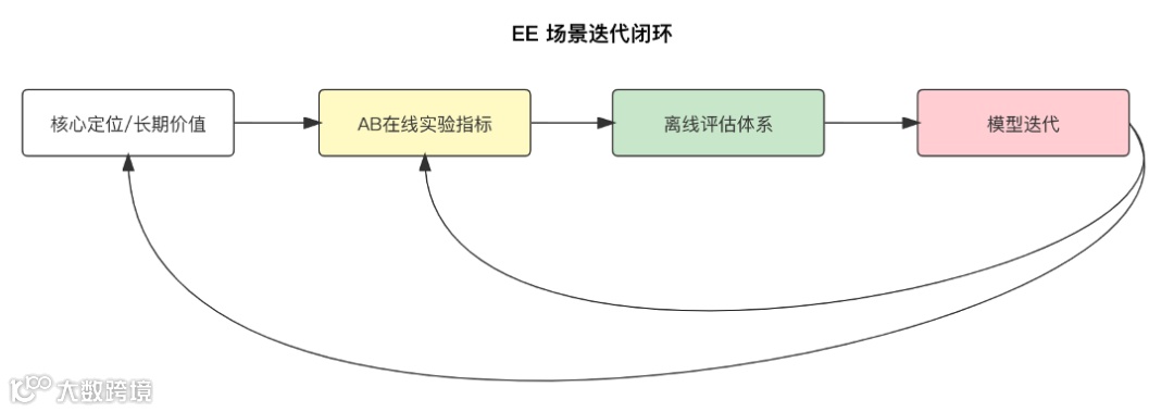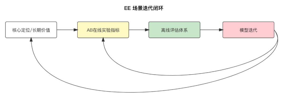 由于EE场景的特殊性,其从核心定位 → 在线指标 → 离线评估体系 → 模型迭代的优化链路中的每一步,都需结合EE特点进行针对性升级。