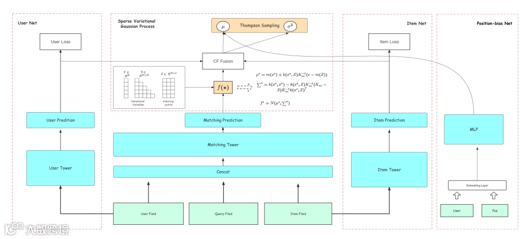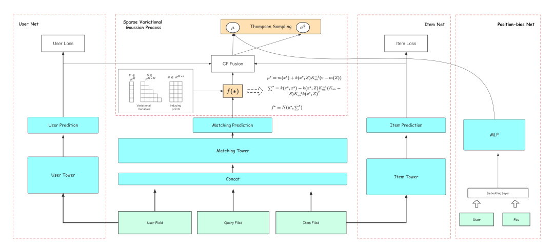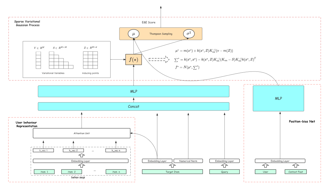 升级现有DNN + 稀疏变分高斯(svgp) 采样打分模型,采用基于position-bias net(位置偏置)的模型方案,方案具体为训练、预测两阶段的位置去偏。