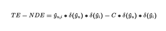 预测阶段缓解流行度偏置,主要在于去除流行度因素、用户心智因果(偏置因子)的影响,具体通过总因果效应减去自然直接效应(偏置因子效应),尽量准确还原 U-I 内容匹配程度的影响