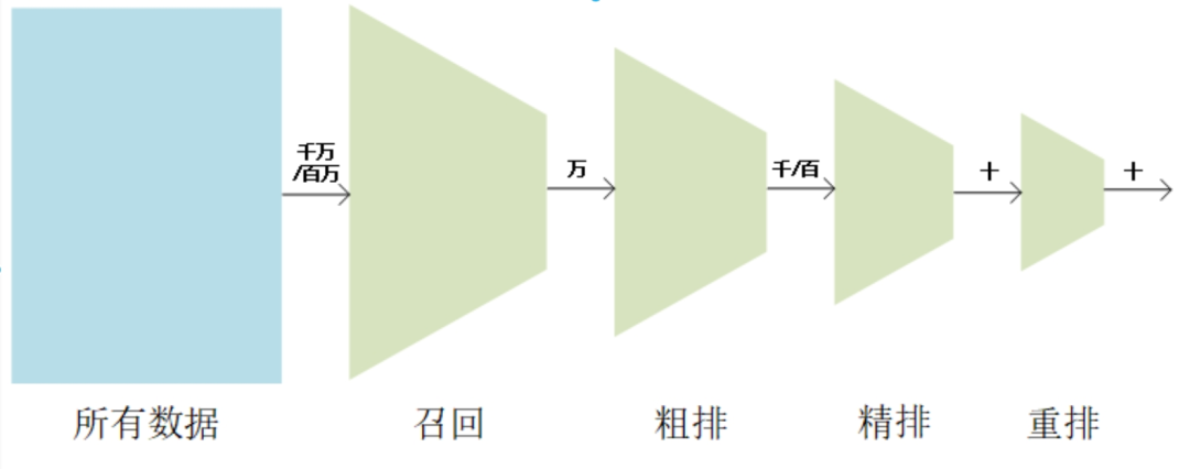 排序阶段分为粗排和精排,粗排一般出现在在召回结果的数据量级比较大的时候。