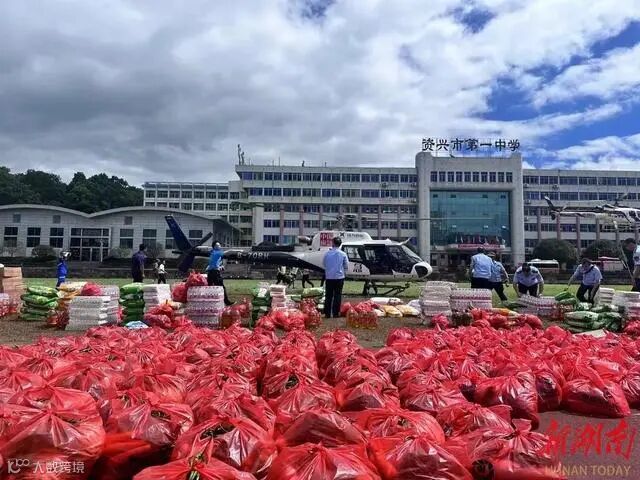 记者从资兴市防汛抗旱指挥部获悉,省应急管理厅航空应急救援中心调集驰援的4架直升机正在紧张忙碌地开展空中投运。省市各级迅速调集生活必需品、发电机、充电宝、钢材等大批应急救援物资,派出多路应急救援力量,通过直升机源源不断投送资兴市受灾地区。