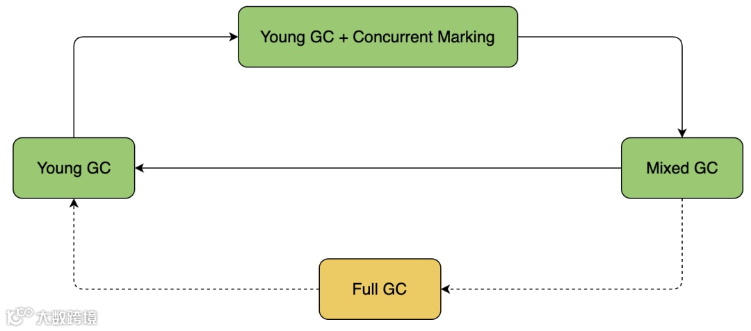 年老代占用空间超过整个堆的45%(可通过参数-XX:InitiatingHeapOccupancyPercent进行设置)