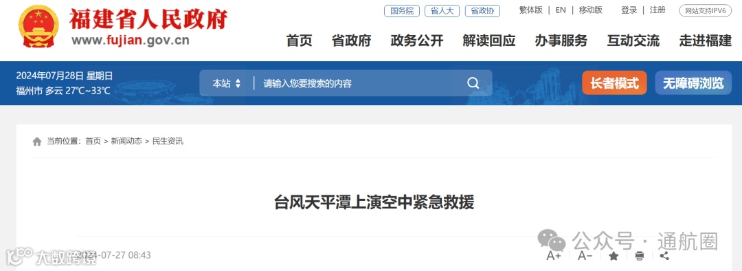 人民日报7月28日报道:“快!直升机立马出动!”7月26日,在平潭东庠岛,上演了一场惊心动魄的空中救援。13时55分,平潭海上搜救中心接报,一名群众突发疾病,需紧急送医治疗。受台风影响,风浪较大,船舶接送存在危险且航程时间较长。搜救中心决定就近协调救助直升机开展紧急救援。45分钟内,直升机完成起飞、接送到降落,患者及时入院治疗,目前情况稳定。“如果不是及时的信息沟通和网格员的帮助,后果不堪设想。”谈及援救过程,病人家属说。