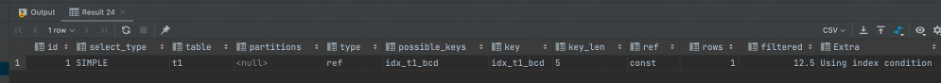 尽量使用覆盖索引进行查询,以避免回表操作带来的性能损耗。 select key1 from single_table order by key1 -