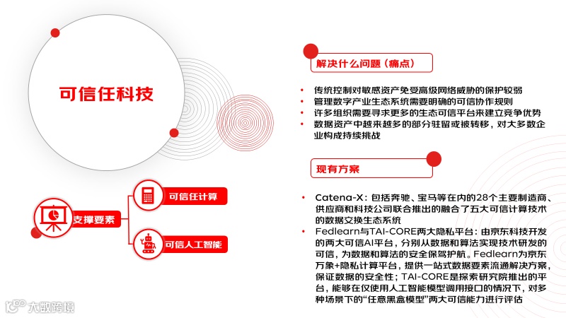 可信任科技旨在制定保障措施、增强隐私计算、构建可信任平台、管理工程风险,从而获得内外部利益相关者的信任的系统。