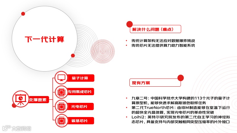 下一代计算是以量子计算、专用集成芯片、硅基光电芯片等技术为代表的,突破经典计算架构提供指数级算力增长的软硬件能力集合。