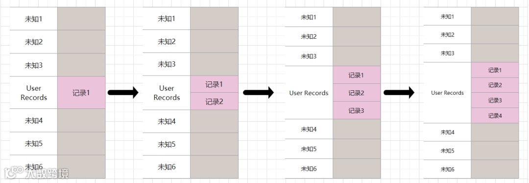 最直接的做法是:从 infimum记录开始,沿着单链表的顺序不断的向后查找,直到supremum结束。在这期间,找到满足条件的记录就返回,找不到则不返回。