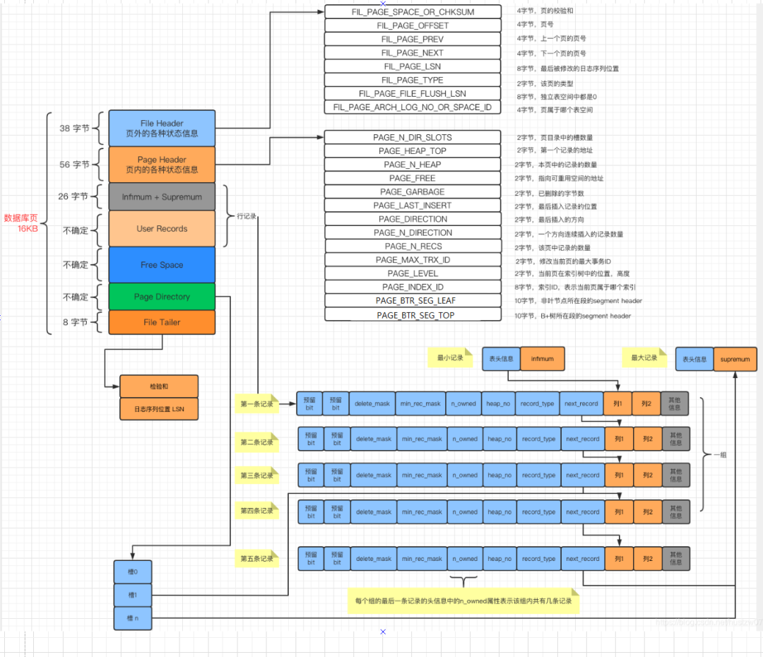 那么接下来我们看看,数据页的结构如何,以及一条条行记录如何存放在数据页中,先上个图: