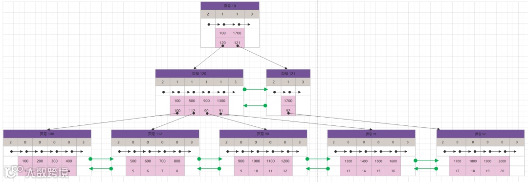双向链表的页号并不保证是连续的。 下一个数据页中用户记录的主键值必须大于上一个页中用户记录的主键值。【在依次写入主键数据不连续的行记录时,会发生页中数据的迁移。】