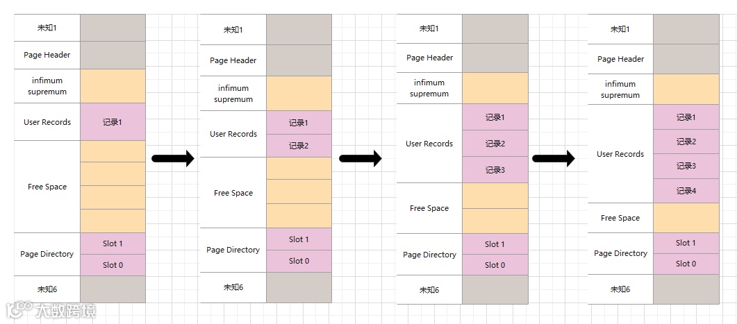 其中一条记录称为 infimum 【[ɪnˈfaɪməm] ,下确界】行记录,规定是数据页中记录的最小值。