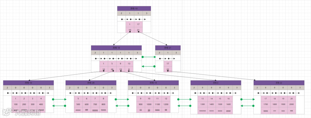 存放用户记录的数据页,根据页中用户记录的主键大小顺序排成一个双向链表。所有用户记录都存放在叶子节点上。 -