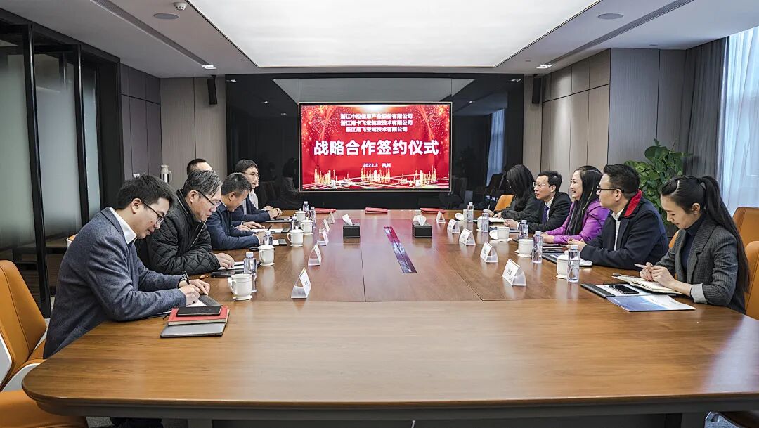 3月23日,浙江海卡飞宏航空技术有限公司董事长邓凯匀、浙江易飞空域技术有限公司董事长邵明杰一行5人考察中控信息。中控信息董事长兼总裁赵鸿鸣、高级副总裁杨成,公司副总裁汤灏、邵庆,机电工程事业群副总经理朱皓等热情接待。