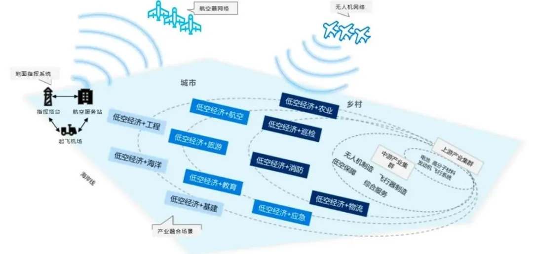 低空经济的核心是航空器与各产业的“组合式”经济形态,如“农林+航空”、“体育+航空”、“电力+航空”、“公安+航空”等。