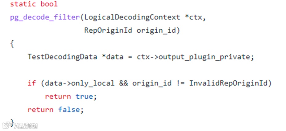 部分DTS应用为了解决这个问题会创建辅助表,在事务中先对辅助表进行操作,通过解析到对辅助表的操作而得知该记录是有DTS应用插入,从而过滤该事务,不再循环解析。PostgreSQL对事务提供了Origin记录,无须辅助表,通过pg_replication_origin_session_setup函数或者发布订阅中的replorigin_create即可指定Origin ID。