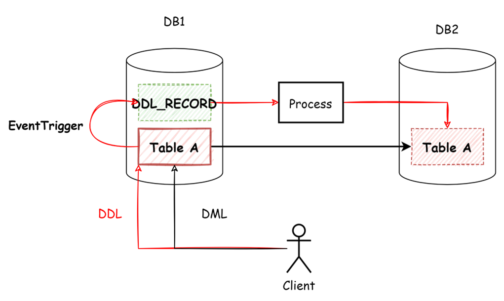1. 使用事件触发器感知表结构变更,记录到DDL_RECORD表中,并将该表通过逻辑复制进行发布。