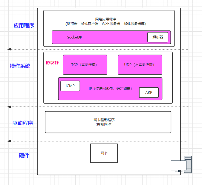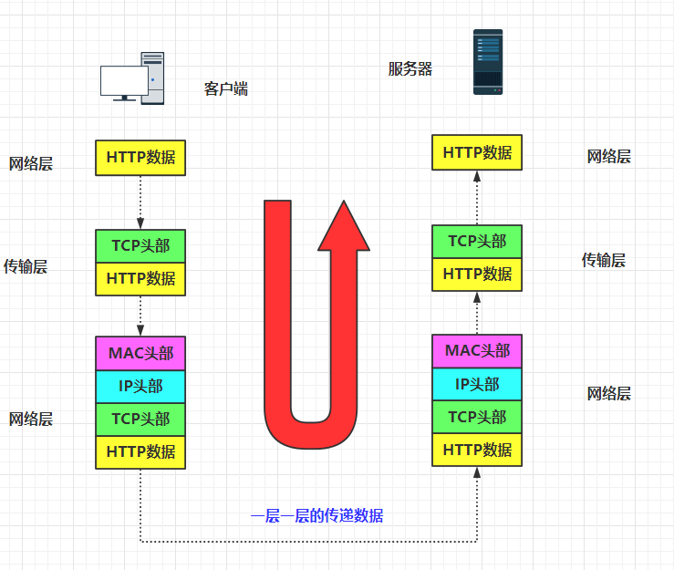 一个数据包从客户端到服务端中间经过每一层都需要加工处理; -