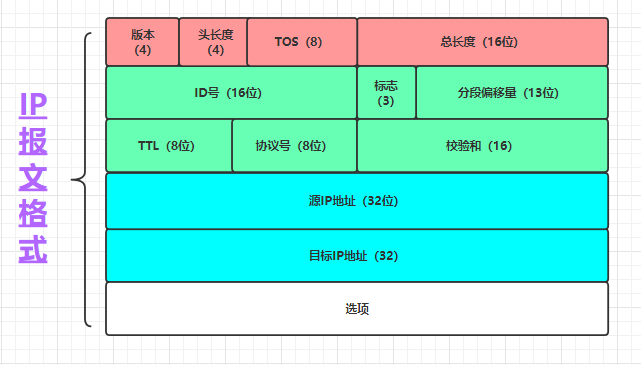 接收方IP地址(32比特): 网络包接收方的IP地址 -