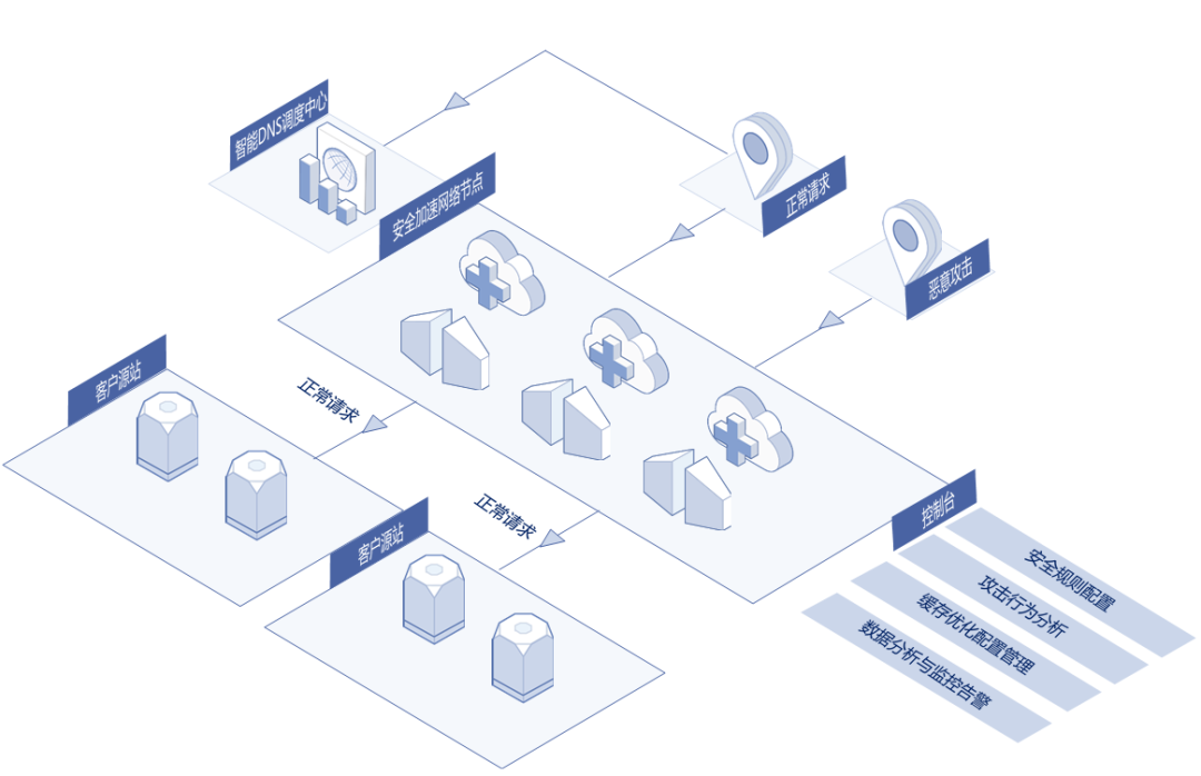 京东云星盾安全加速提供静态内容加速功能,支持完整的静态网页、文件等互联网内容分发管理和网络加速解决方案,让每个正常请求能够快速到达目标源站。
