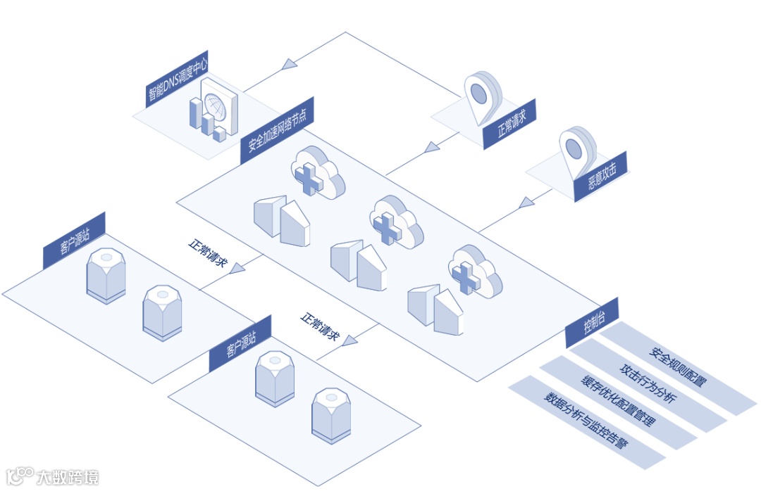 为解决单点故障,越来越多的应用选择多云部署。京东云星盾安全加速对客户源站无依赖,可适配企业客户的多云业务架构,提供全接入、半接入方式灵活选择。通过接入安全加速网络,快速、一站式解决网络攻击防御、缓存加速、优化加速的需要。充分解决大型活动、事件导致源站性能过载、基础设施不可用等问题。