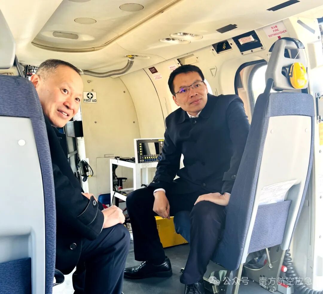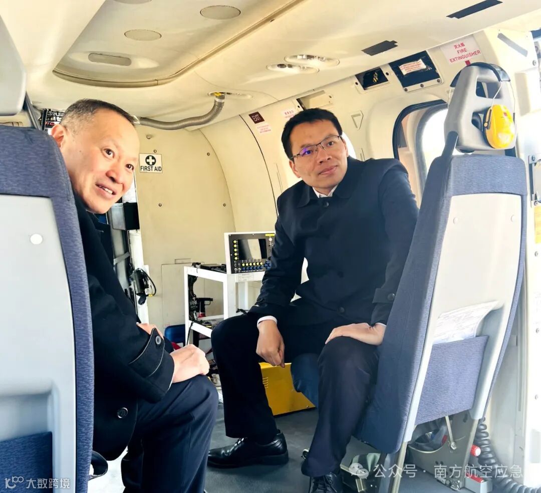 在浙江航站主要负责人的陪同下,浙大二院党委副书记马岳峰一行参观了当前浙江航空应急救援的主流机型——H225直升机,现场了解该型直升机性能、特点等,实地考察机上设施设备与医疗急救的适配性。