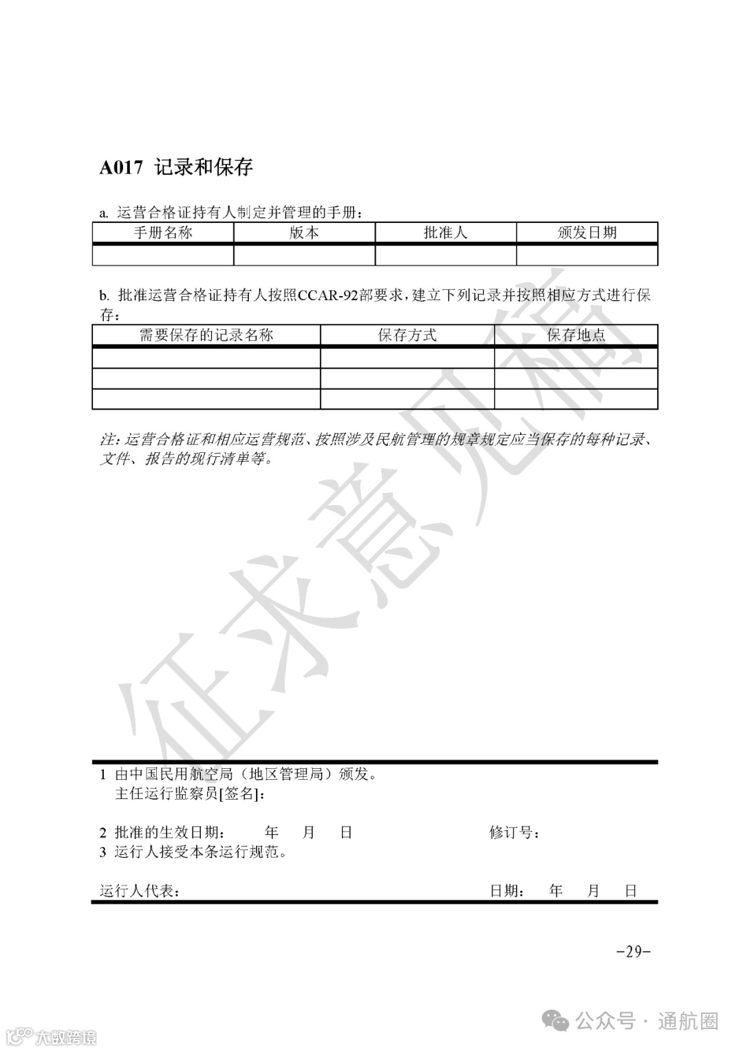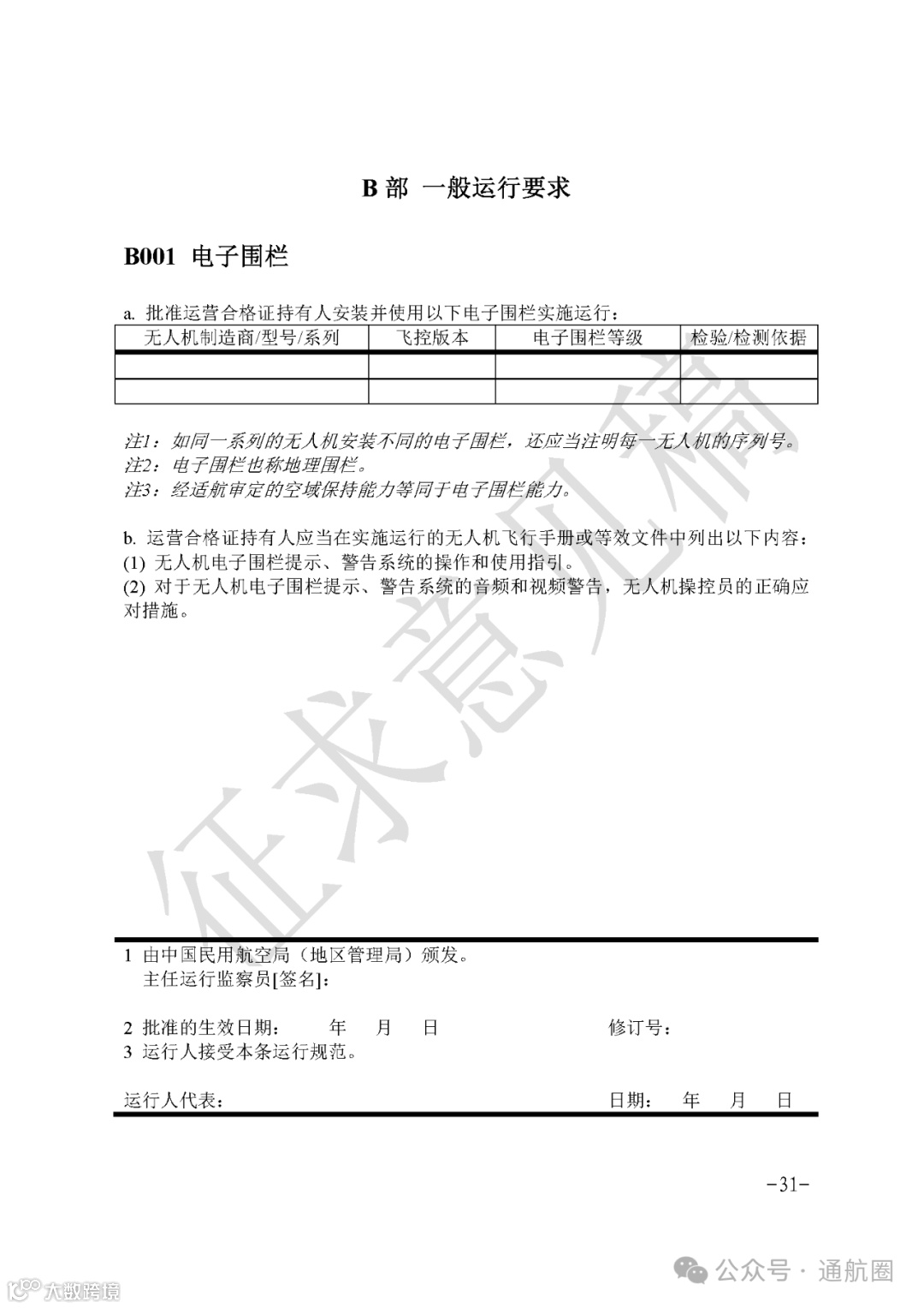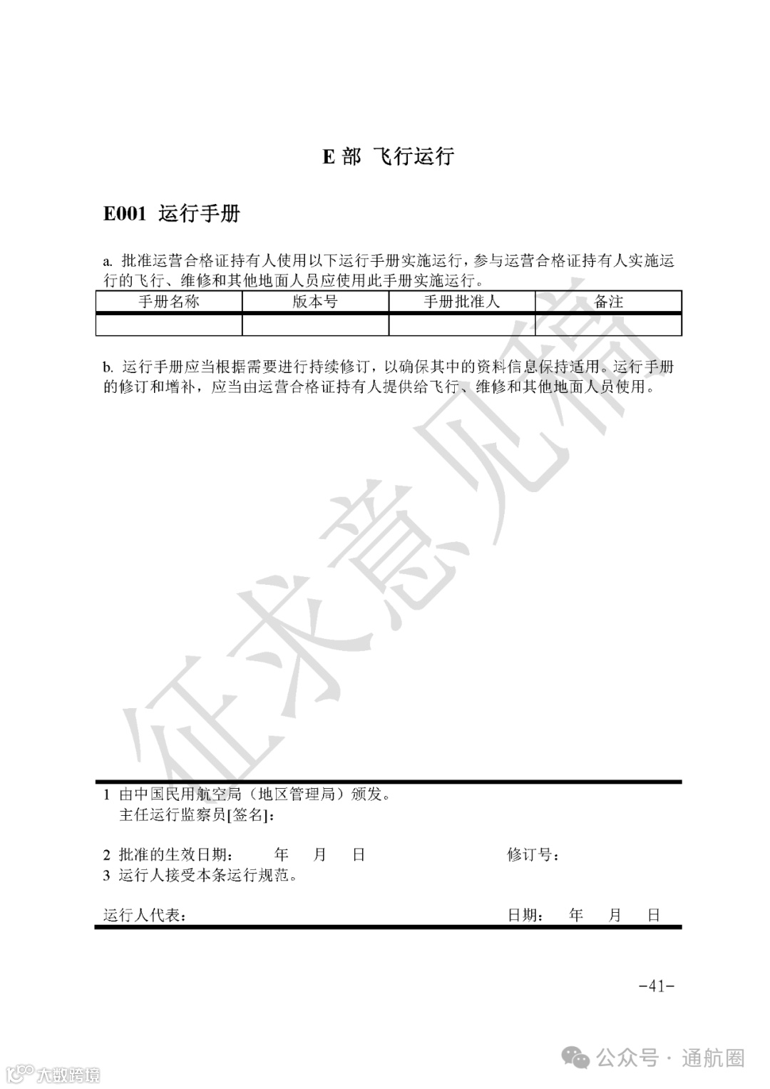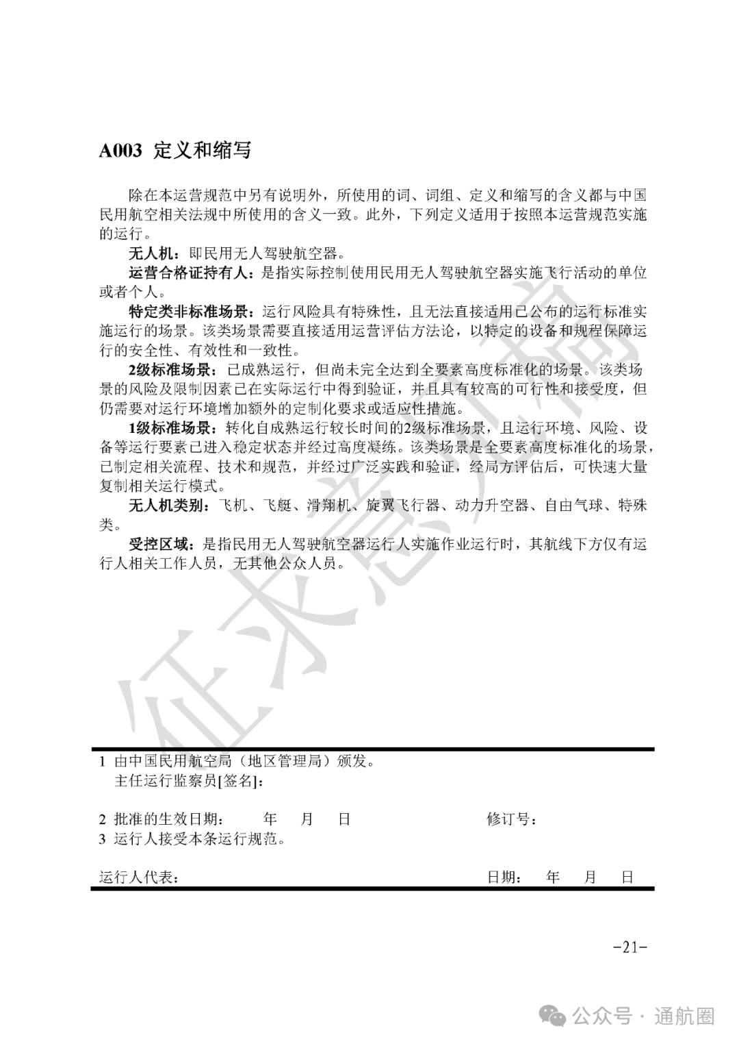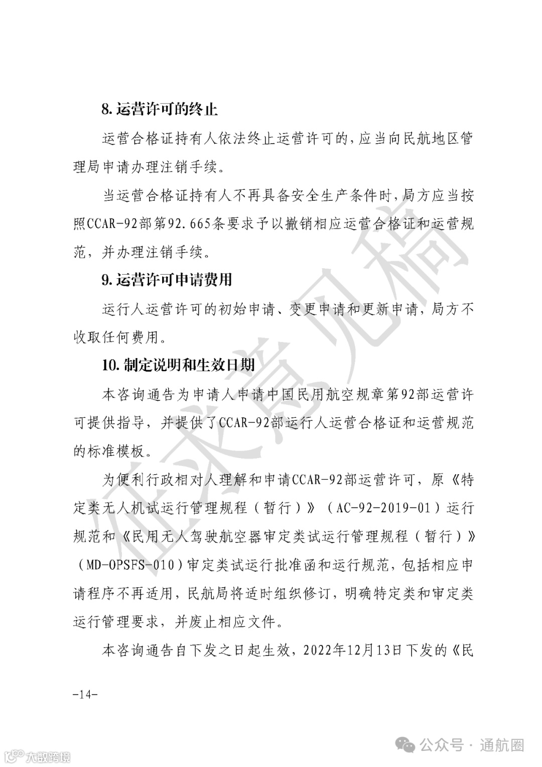 3月15日晚,民航局飞行标准司、运输司联合发布通知,就《中国民用航空规章第92部运营许可的申请和颁发》征求意见。该文件旨在推进《民用无人驾驶航空器运行安全管理规则》(CCAR-92部)运营许可的有序实施,明确许可申请流程和要求,规范运营安全评估实施的范围和要点,细化运行管理要求。任何单位和个人如有相关意见或者建议,可于2024年3月31日前以电子邮件形式反馈至fs_report@caac.gov.cn。