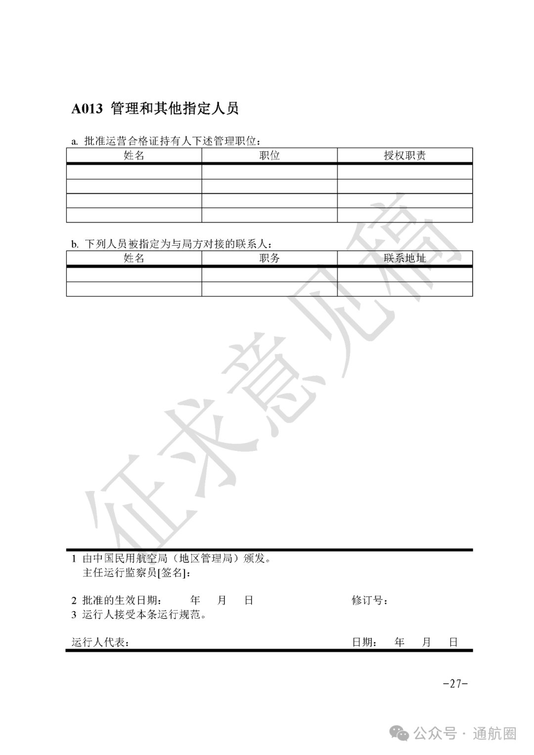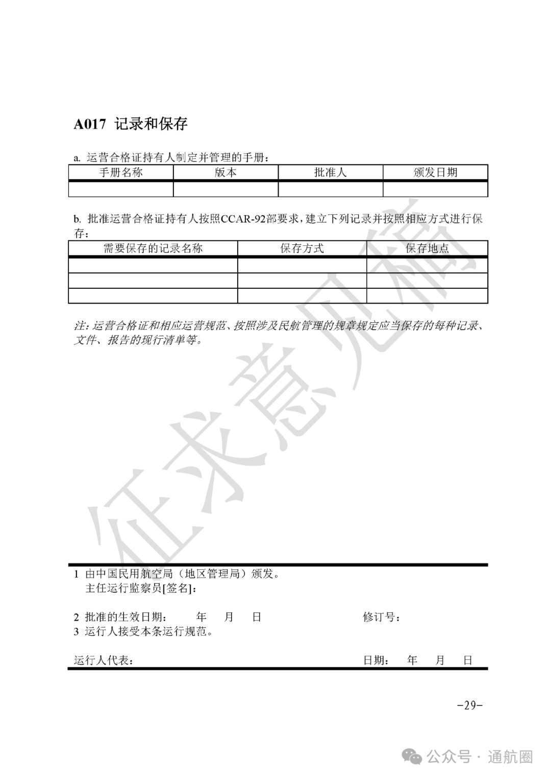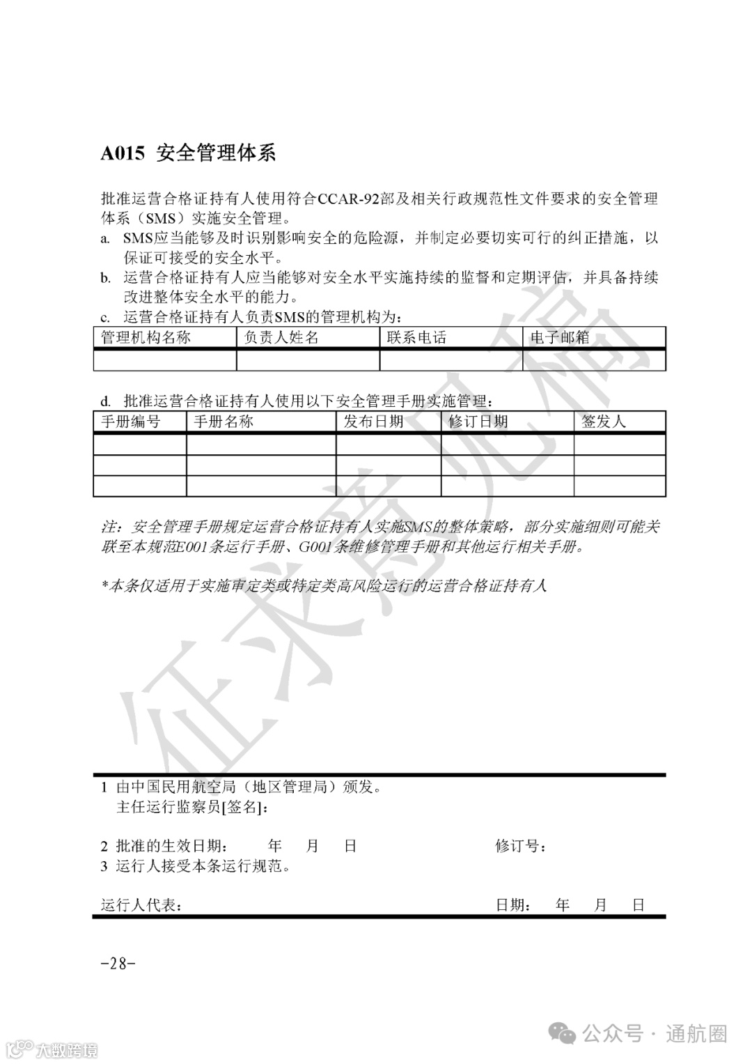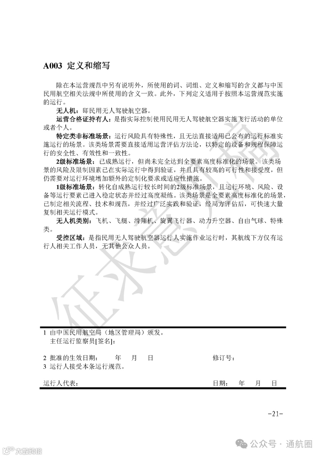 3月15日晚,民航局飞行标准司、运输司联合发布通知,就《中国民用航空规章第92部运营许可的申请和颁发》征求意见。该文件旨在推进《民用无人驾驶航空器运行安全管理规则》(CCAR-92部)运营许可的有序实施,明确许可申请流程和要求,规范运营安全评估实施的范围和要点,细化运行管理要求。任何单位和个人如有相关意见或者建议,可于2024年3月31日前以电子邮件形式反馈至fs_report@caac.gov.cn。
