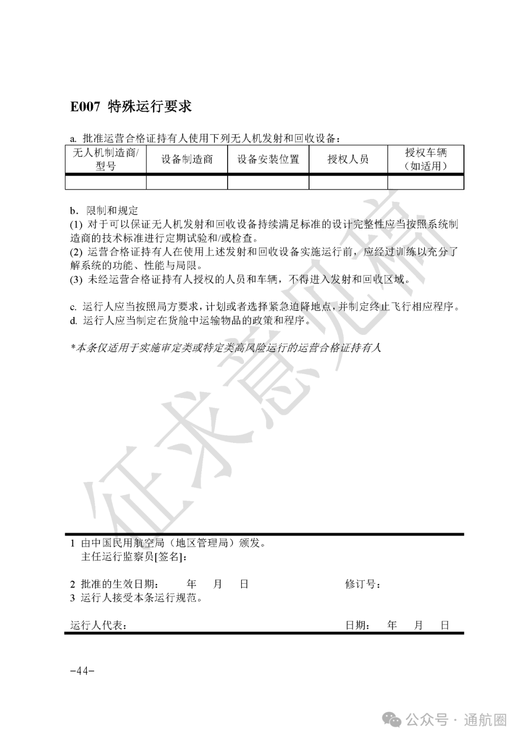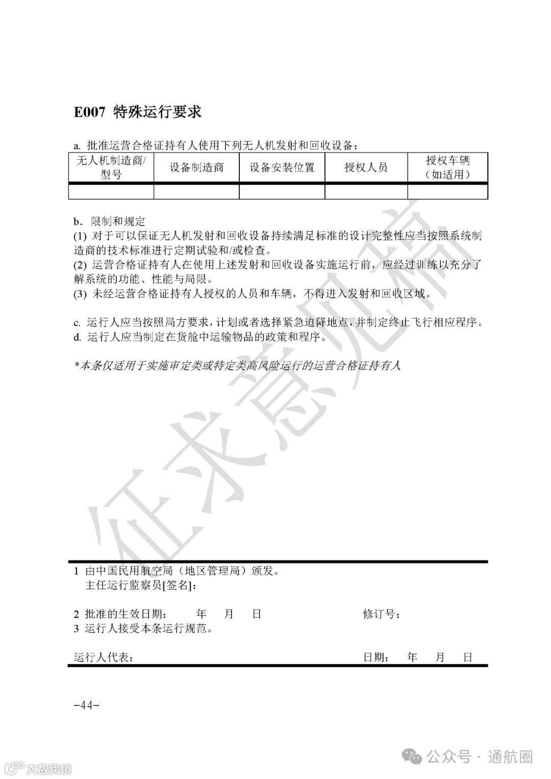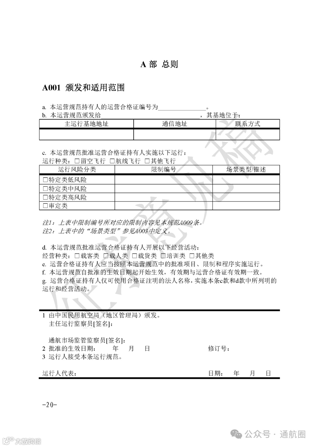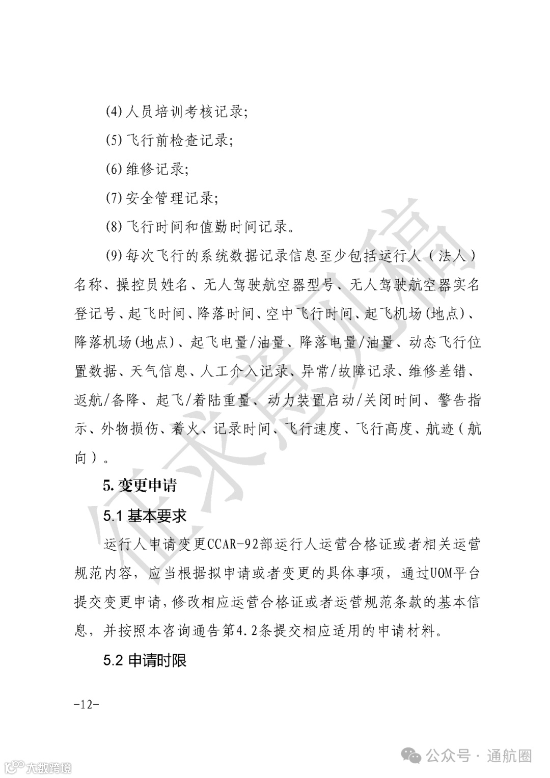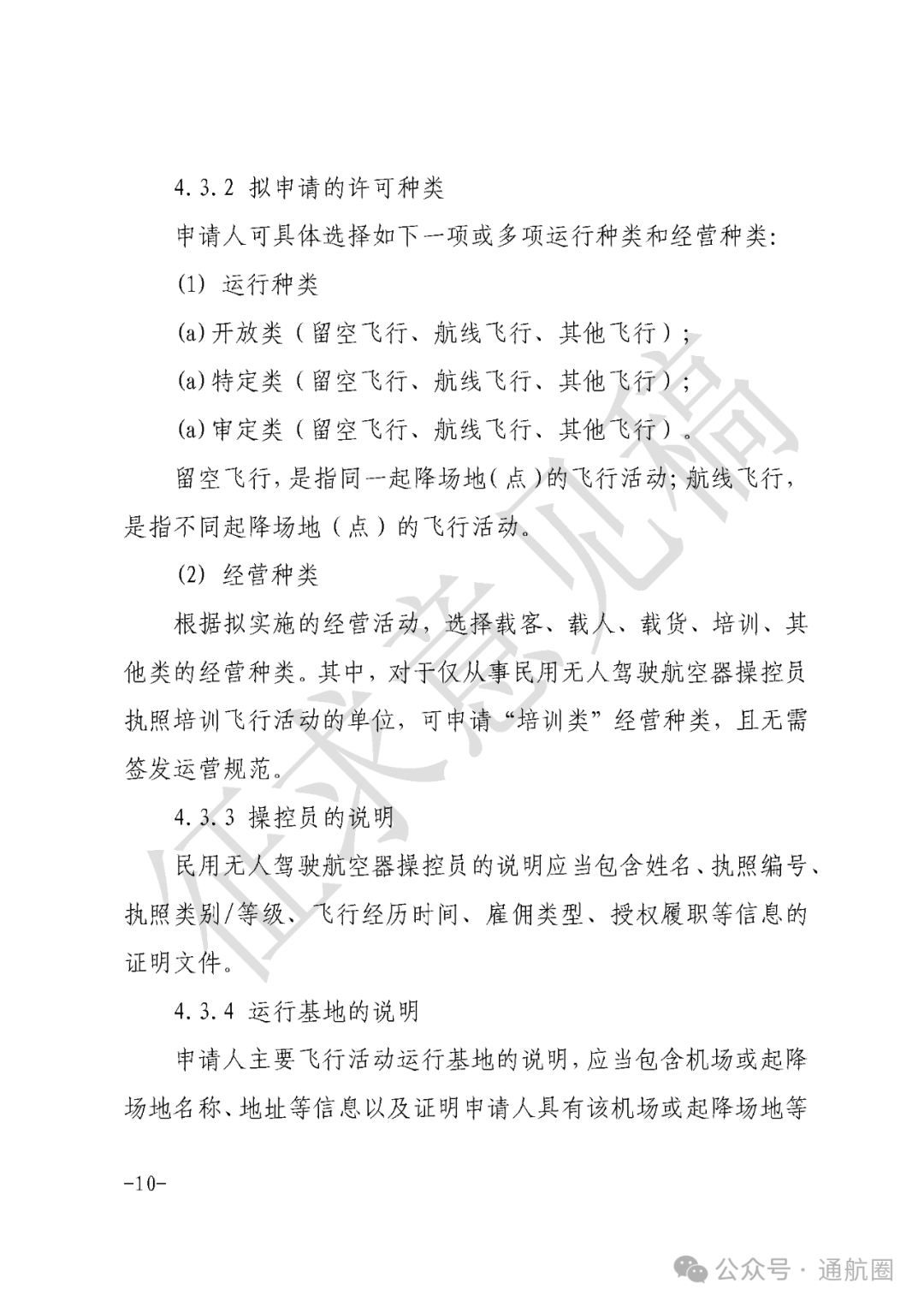 关于运营许可申请程序,初始申请运营合格证,一般分为申请受理、文件审查、现场验证和审批颁证四个阶段。对于变更申请、更新申请的流程与初始申请一致。申请人应当按照CCAR-92部第92.647条相关要求,通过UOM平台提交申请和相应申请材料,并对材料的真实性负责。详情见征求意见稿: