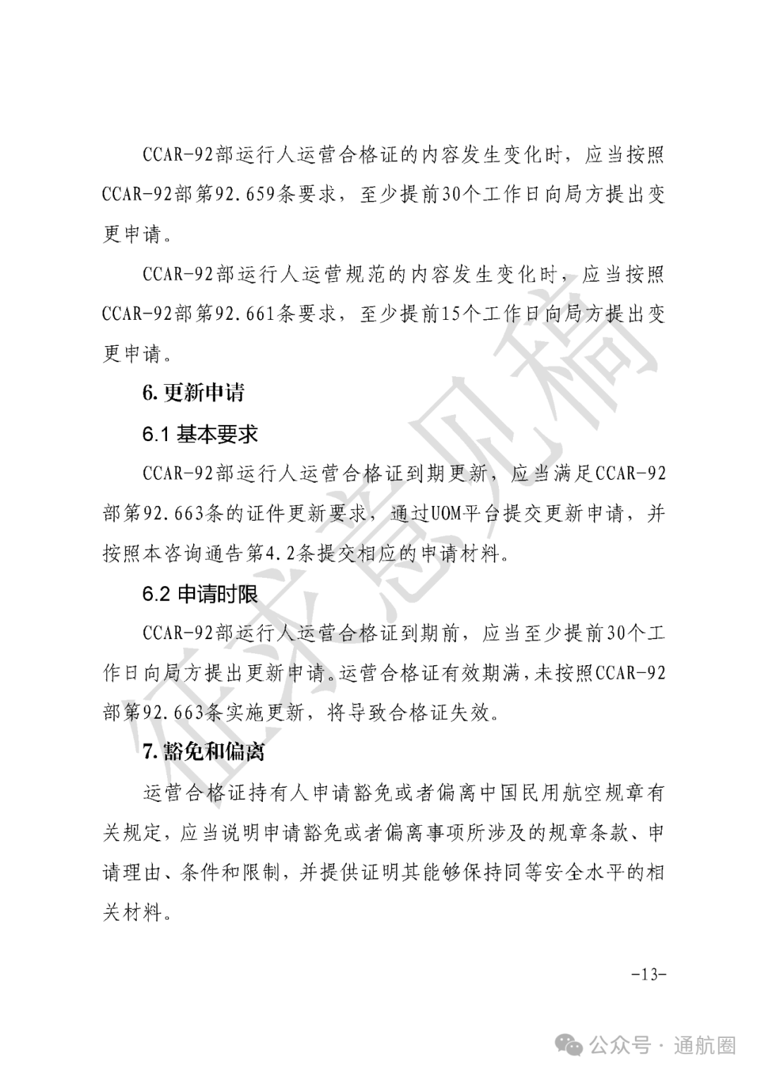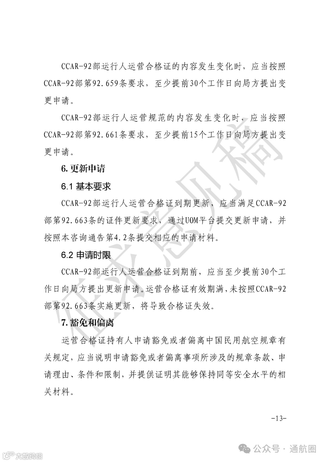 为了方便理解并有效指导CCAR-92部运营合格证和相关运营规范的申请,根据具体事项,将运营许可申请分为初始申请、变更申请和更新申请。运营合格证和相关运营规范的申请和颁发,均在民用无人驾驶航空器综合管理平台(以下简称UOM平台)完成,网址为https://uom.caac.gov.cn/。