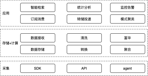 业务层:日志产品层。提供检索、分析、监控、消费转储等功能。