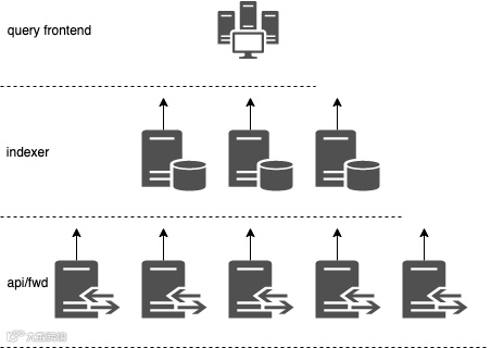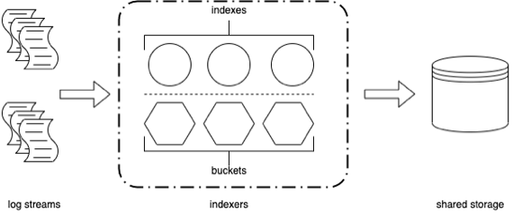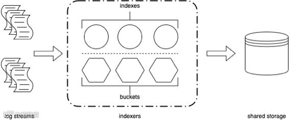 日志数据流传输到服务端后,被indexer重组为bucket及index文件,最终被写入共享存储。