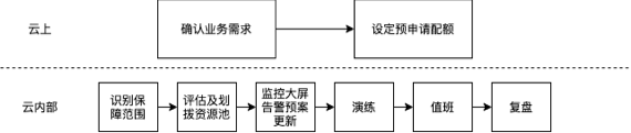 在备战的情况下,我们需要提前按照租户在系统中设定的「预申请配额」信息(见上方备战流程)进行预扩容,以消除临时进行大量伸缩可能会带来的问题。
