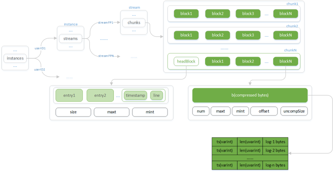 * Streams:以日志流的指纹 (streamFP) 为键,Stream为值的Map结构;