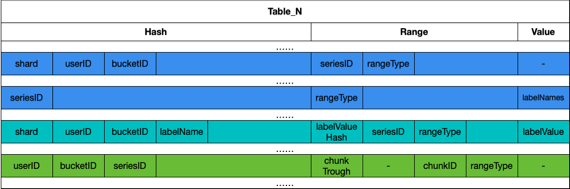 ◆ hash为租户ID(userID)、分桶(bucketID)、标签名(labelName)。