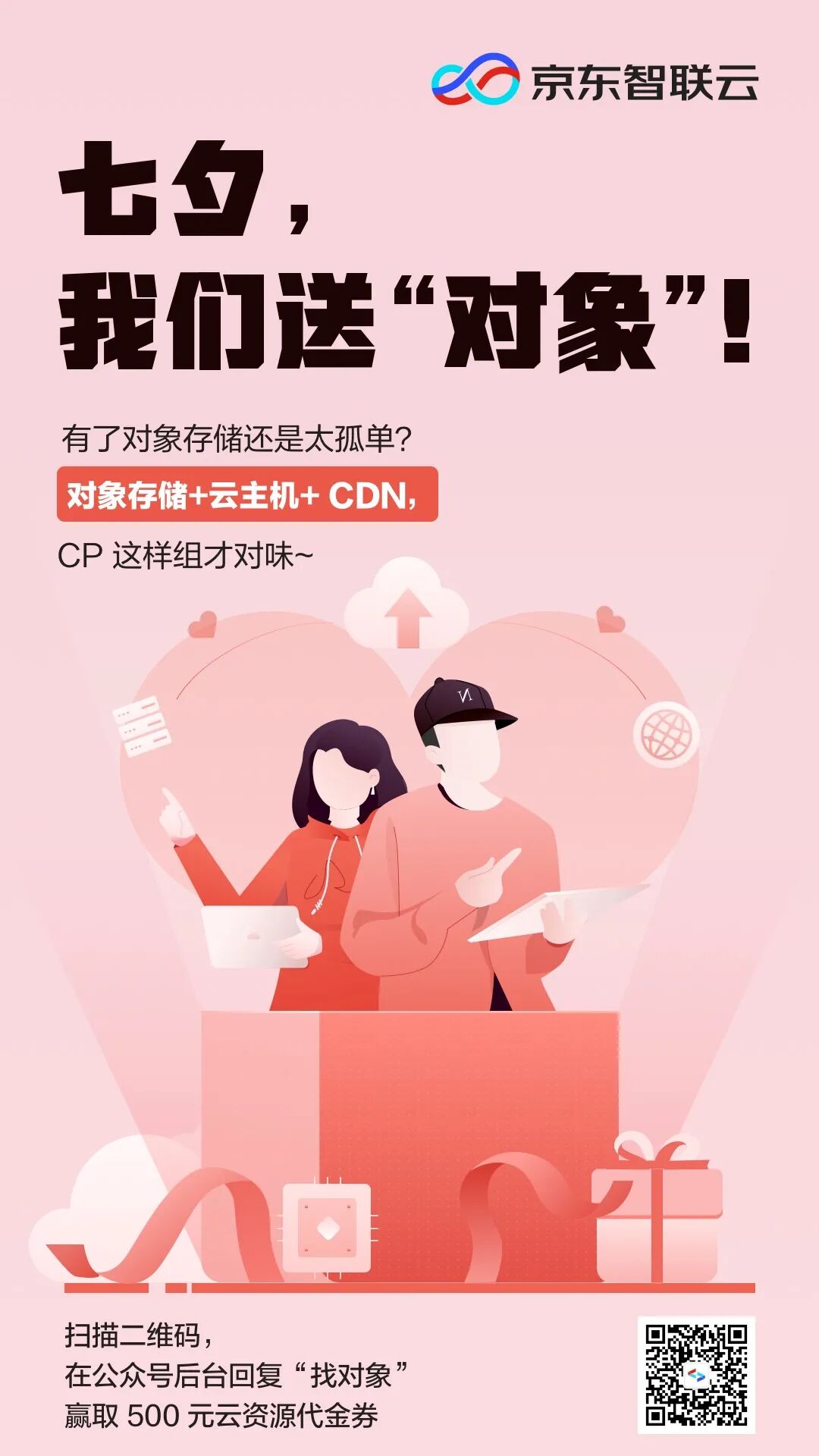 ▲扫码海报中的二维码,在公众号后台回复“找对象”,参与七夕活动,就有机会赢取500元云资源代金券▲