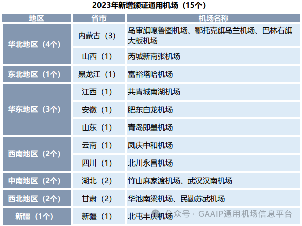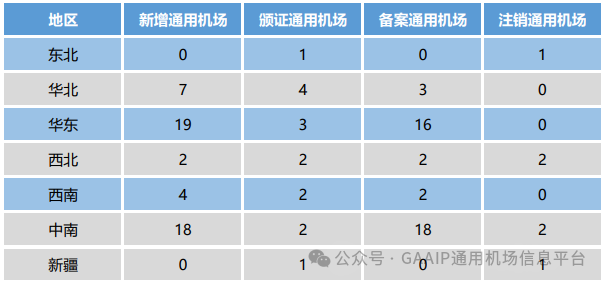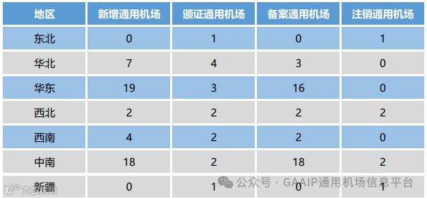 表5 2023年新增通用机场数量按地区统计