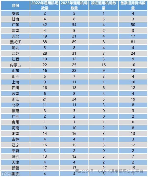 随着国家对通用航空产业支持力度的不断加大以及各地区对通用航空产业发展重视程度的不断提高,我国通用航空产业发展迅速,各地通用机场建设如火如荼,机场数量持续增加。为全面梳理2023年我国通用机场发展情况,中国AOPA通用机场研究中心借助通用机场信息平台,对全国在册通用机场的数量和分布情况进行了盘点,通过对比分析,直观呈现2023年全国通用机场的发展状况。