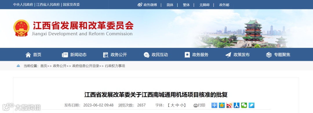 抚州市发展改革委报来《关于申请核准江西南城通用机场项目的请示》(抚发改交通字〔2023〕8号)及有关材料收悉。经研究,现就该项目核准事项批复如下: